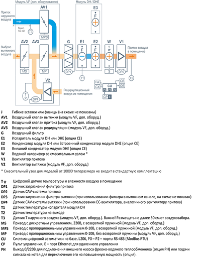 - Регулируемая подача наружного воздуха для осушения ассимиляцией влаги.